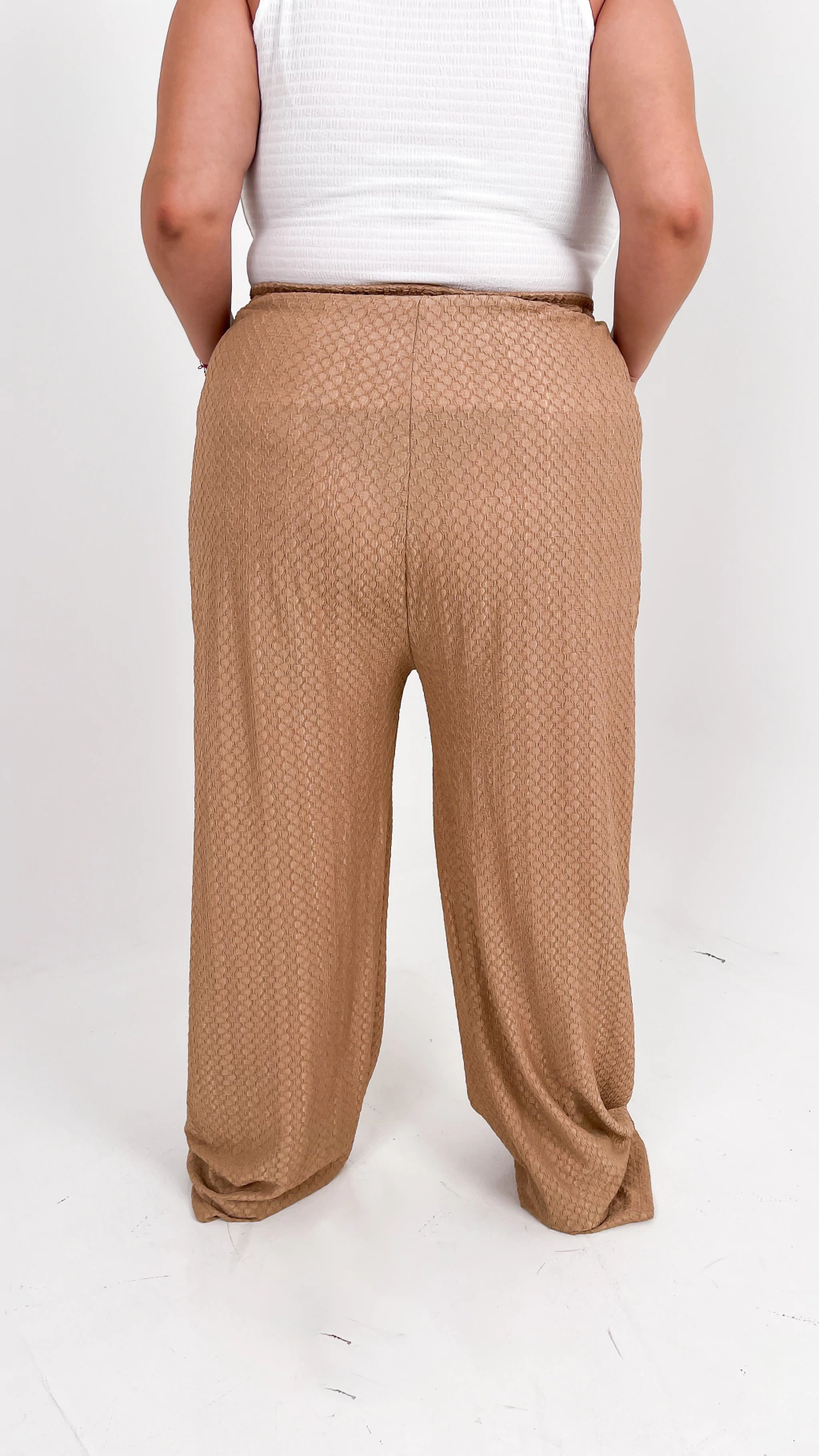 El Kalani está confeccionado en bambula elastizada con una textura tipo panal de abeja que le da un toque único y natural. Tiene corte recto, tiro alto (¡el real tiro alto!) y cintura con elástico que se adapta cómodamente a tu cuerpo sin ajustar.
